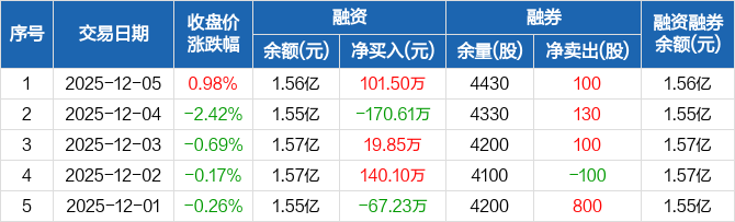 上海雅仕:融资净买入101.5万元,融资余额1.56亿元(12-05)