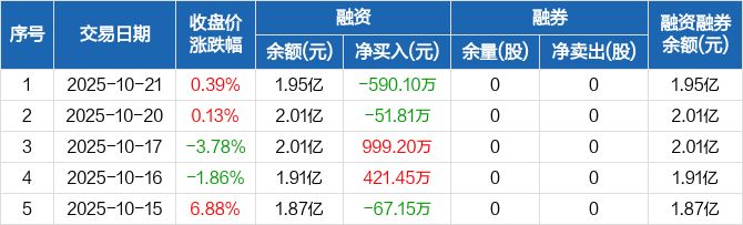 天洋新材:融资净偿还590.1万元,融资余额1.95亿元(10-21)
