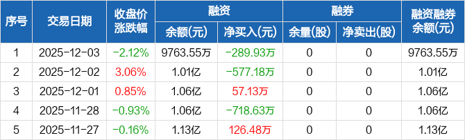 丰倍生物:融资净偿还289.93万元,融资余额9763.55万元(12-03)