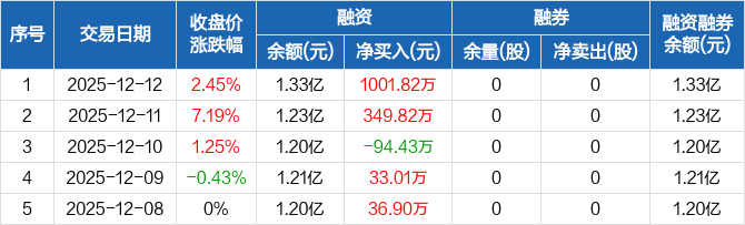星德胜:融资净买入1001.82万元,融资余额1.33亿元(12-12)