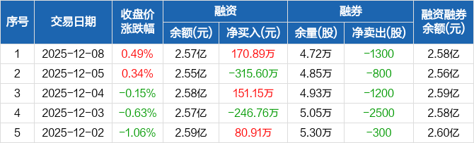 文灿股份:融资净买入170.89万元,融资余额2.57亿元(12-08)