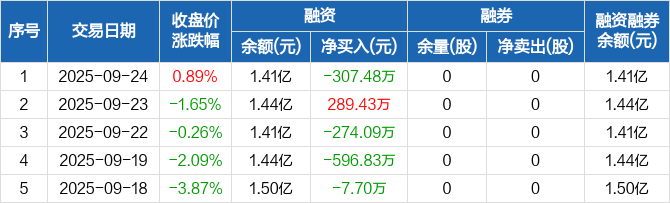 安乃达:融资净偿还307.48万元,融资余额1.41亿元(09-24)