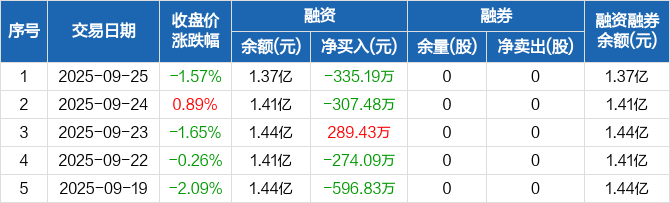 安乃达:融资净偿还335.19万元,融资余额1.37亿元(09-25)