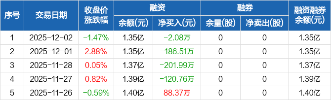 安乃达:连续4日融资净偿还累计511.35万元(12-02)