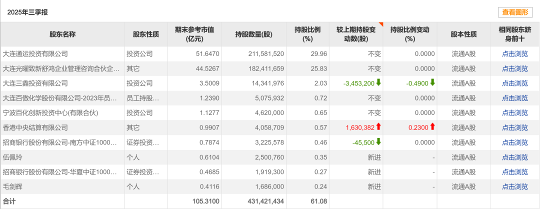 百傲化学三季度末股东榜