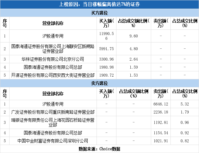 沪股通现身龙虎榜,辰欣药业涨停(10-17)