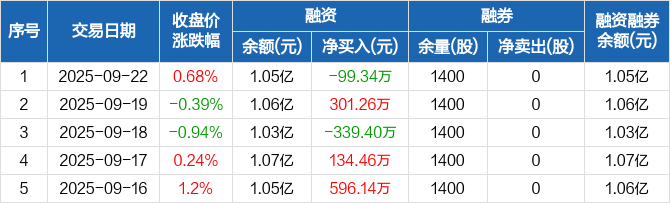 盛景微:融资净偿还99.34万元,融资余额1.05亿元(09-22)