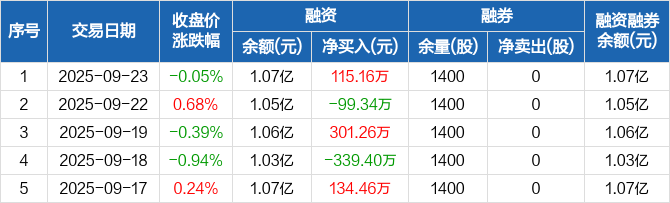 盛景微:融资净买入115.16万元,融资余额1.07亿元(09-23)