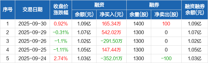 盛景微:融资净买入165.34万元,融资余额1.09亿元(09-30)