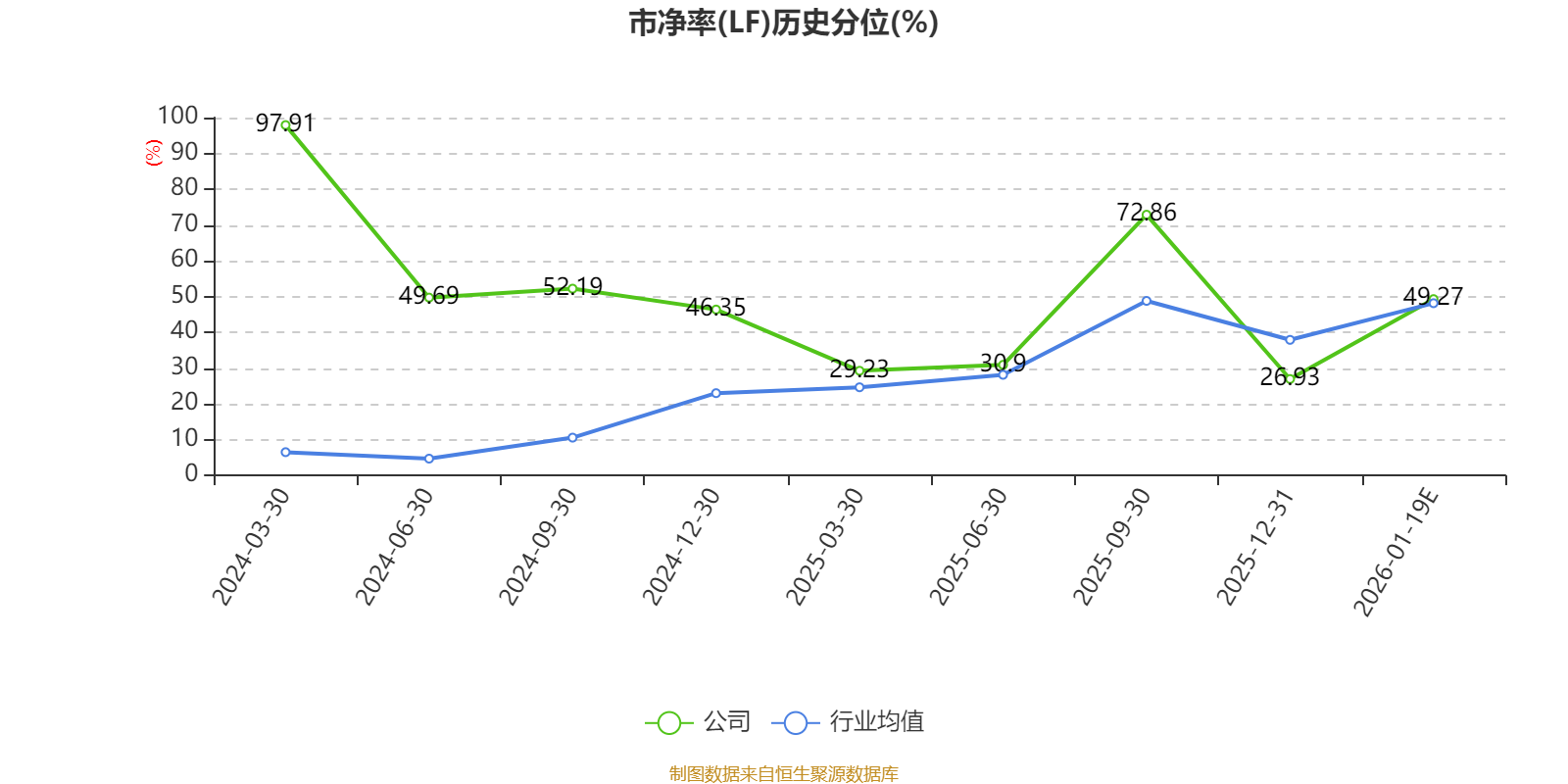 市盈率、市净率为负时,不显示当期分位数,会导致折线图中断。