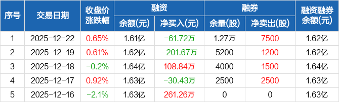 永臻股份:融资净偿还61.72万元,融资余额1.61亿元(12-22)