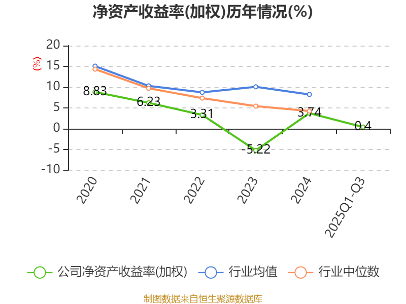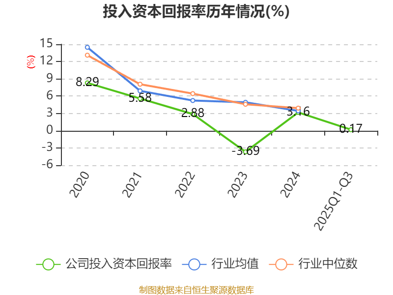 盈利能力方面, 2025年前三季度公司加权平均净资产收益率为0.4%,同比下降2.13个百分点。公司2025年前三季度投入资本回报率为0.17%,较上年同期下降1.87个百分点。
