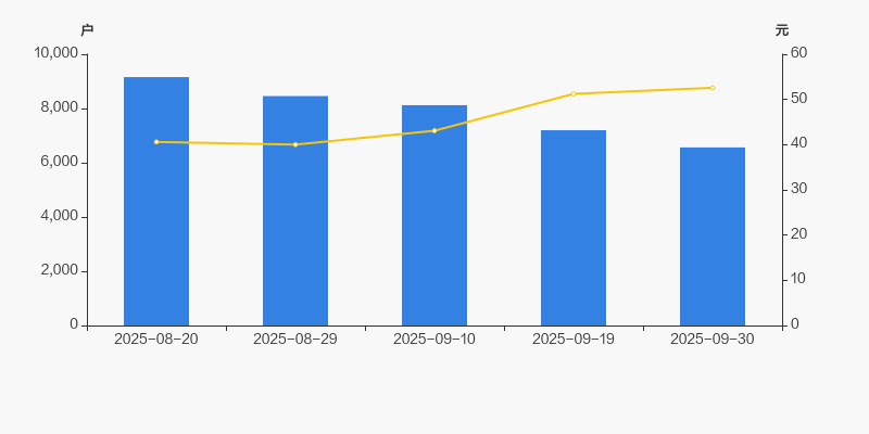 2025年8月20日至今,公司股东户数显著下降,区间跌幅为28.31%。2025年8月20日至2025年9月30日区间股价上涨29.51%。