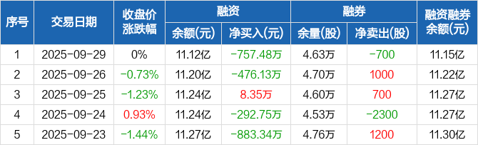 万泰生物:融资净偿还757.48万元,融资余额11.12亿元(09-29)