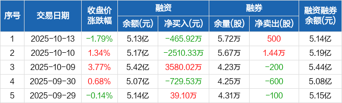 新天然气:融资净偿还465.92万元,融资余额5.13亿元(10-13)