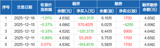 新天然气:融资净偿还463.91万元,融资余额4.63亿元(12-16)