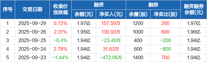 金辰股份:融资净买入157.59万元,融资余额1.97亿元(09-29)