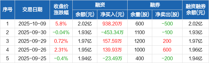 金辰股份:融资净买入938.2万元,融资余额2.02亿元(10-09)