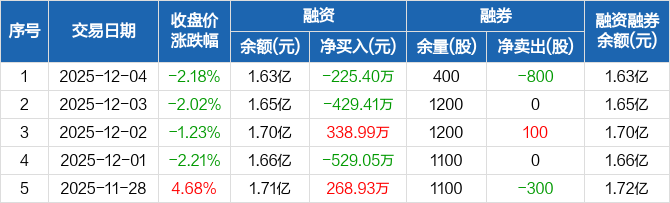 金辰股份:融资净偿还225.4万元,融资余额1.63亿元(12-04)