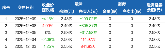 永杉锂业:连续3日融资净偿还累计731.96万元(12-09)