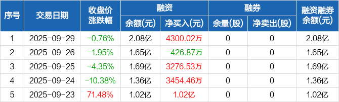 C友升:融资净买入4300.02万元,融资余额2.08亿元(09-29)