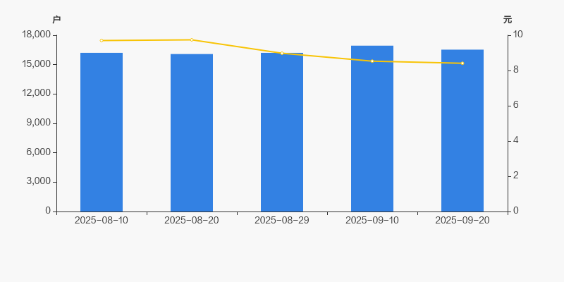 2025年8月10日至今,公司股东户数有所增长,区间涨幅为2.00%。2025年8月10日至2025年9月20日区间股价下降13.30%。