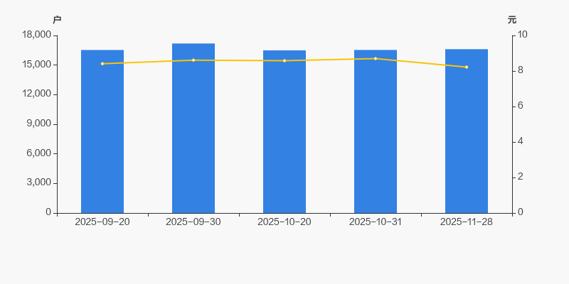 2025年9月20日至今,公司股东户数有所增长,区间涨幅为0.50%。2025年9月20日至2025年11月28日区间股价下降2.26%。