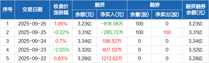 振江股份:融资净偿还818.98万元,融资余额3.23亿元(09-26)
