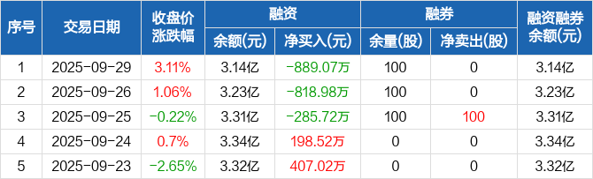 振江股份:连续3日融资净偿还累计1993.76万元(09-29)