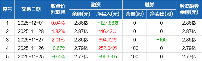 振江股份:融资净偿还127.88万元,融资余额2.86亿元(12-01)