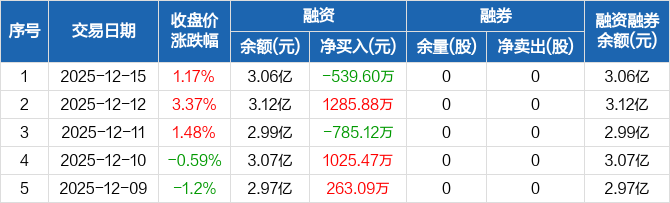 振江股份:融资净偿还539.6万元,融资余额3.06亿元(12-15)