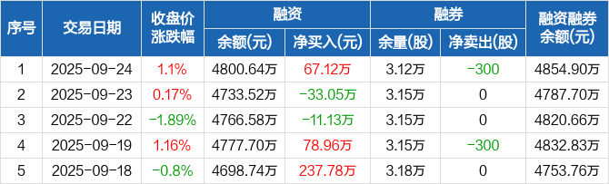 欧普照明:融资净买入67.12万元,融资余额4800.64万元(09-24)