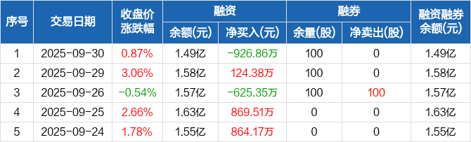 众源新材:融资净偿还926.86万元,融资余额1.49亿元(09-30)