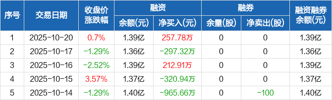 众源新材:融资净买入257.78万元,融资余额1.39亿元(10-20)