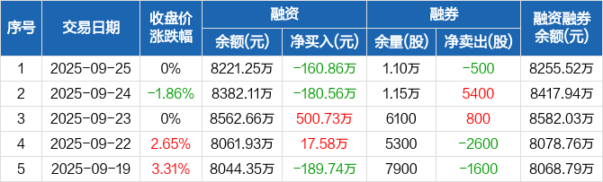 神马电力:融资净偿还160.86万元,融资余额8221.25万元(09-25)