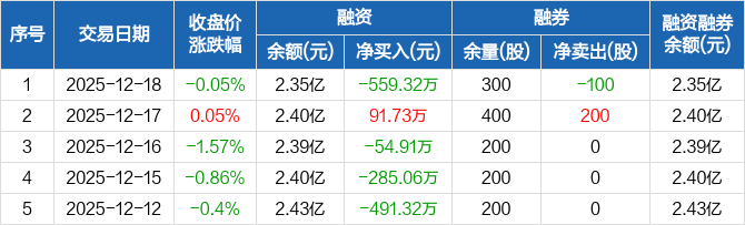 美诺华:融资净偿还559.32万元,融资余额2.35亿元(12-18)