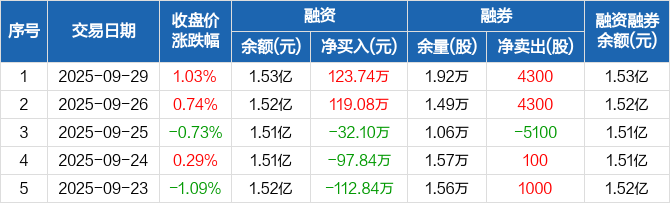 普莱柯:融资净买入123.74万元,融资余额1.53亿元(09-29)