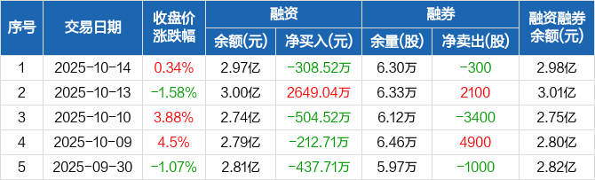 珍宝岛:融资净偿还308.52万元,融资余额2.97亿元(10-14)