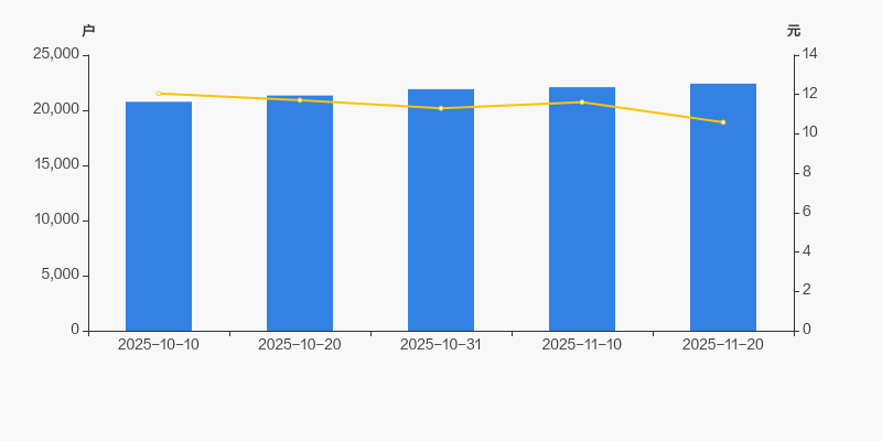 自2025年10月10日以来,公司股东户数连续4期上涨,截至目前增幅为7.93%。2025年10月10日至2025年11月20日区间股价下降12.12%。