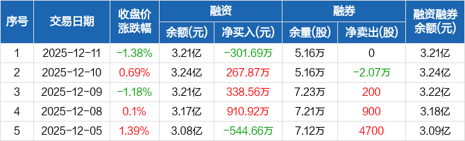 珍宝岛:融资净偿还301.69万元,融资余额3.21亿元(12-11)
