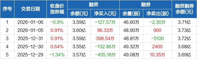 伟明环保:融资净偿还127.57万元,融资余额3.59亿元(01-06)