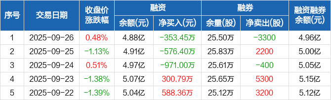 口子窖:融资余额4.88亿元,创近一年新低(09-26)