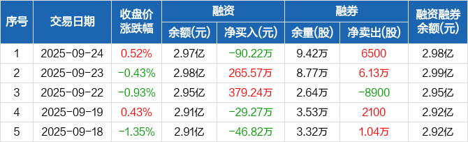 广信股份:融资净偿还90.22万元,融资余额2.97亿元(09-24)