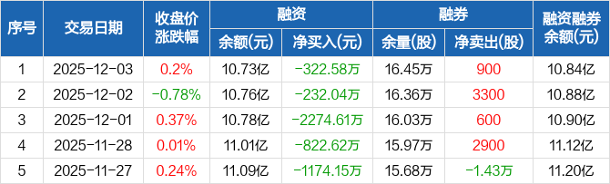 珀莱雅:连续5日融资净偿还累计4826万元(12-03)