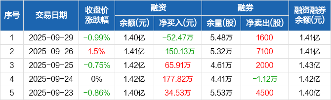 禾丰股份:融资净偿还52.47万元,融资余额1.4亿元(09-29)