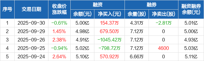 中曼石油:融资净买入154.37万元,融资余额5亿元(09-30)