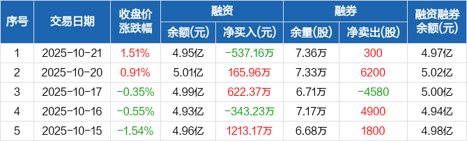 中曼石油:融资净偿还537.16万元,融资余额4.95亿元(10-21)
