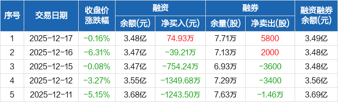 南威软件:融资净买入74.93万元,融资余额3.48亿元(12-17)