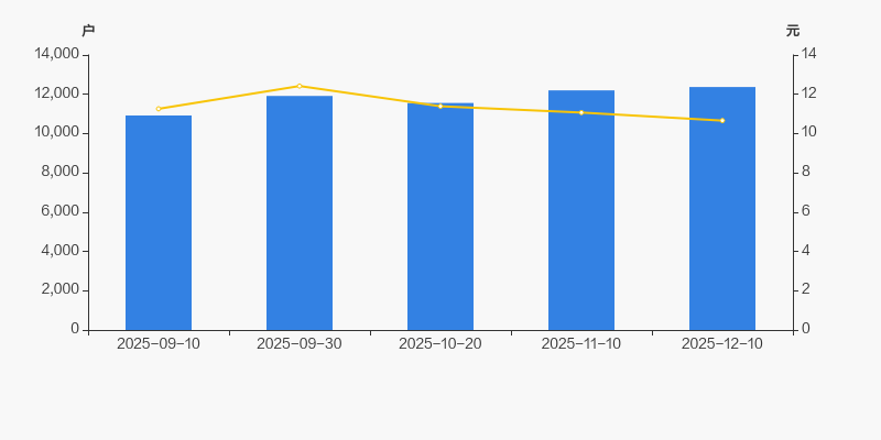 2025年9月10日至今,公司股东户数显著增长,区间涨幅为13.27%。2025年9月10日至2025年12月10日区间股价下降5.33%。