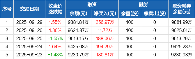 海利尔:连续6日融资净买入累计944.89万元(09-29)